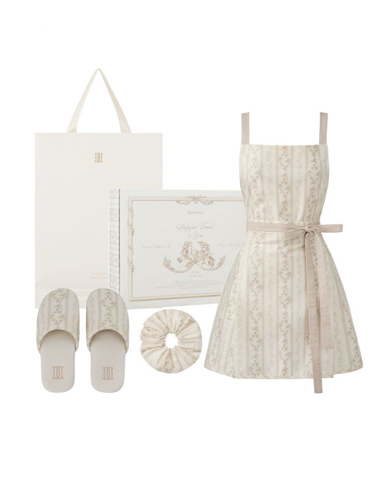 BRISE DE JARDIN APRON+ROOM SLIPPER SET